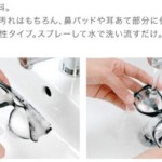 メガネにスプレーして水で洗い流すだけ。レンズにもフレームにも優しい中性タイプ。こすり洗いは不要です。あとはやわらかい布やティッシュで、擦らず押さえるように水滴を吸い取ってください。