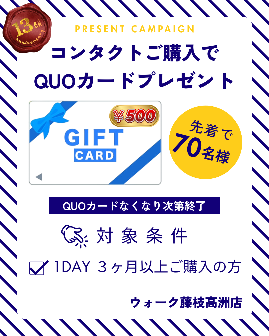 ウォーク藤枝高洲店 FUJIEDA TAKASU 56高洲店CPポスター (1080 x 1350px) (20)CP1080x1350px22 コンタクトレンズもメガネも、気軽に相談できるお店 店舗情報 所在地 〒426-0046 静岡県藤枝市高洲22-18 お問い合わせ TEL. 054-639-6012 FAX. 054-639-6013 営業時間 AM.9:00〜PM.18:30 定休日 木曜と土曜の午後・日曜・祝日